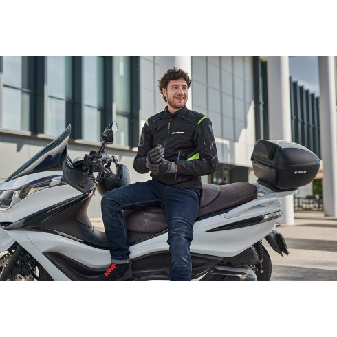 Disponibil în culoare dark blue, ușor de asortat cu echipamentul moto.