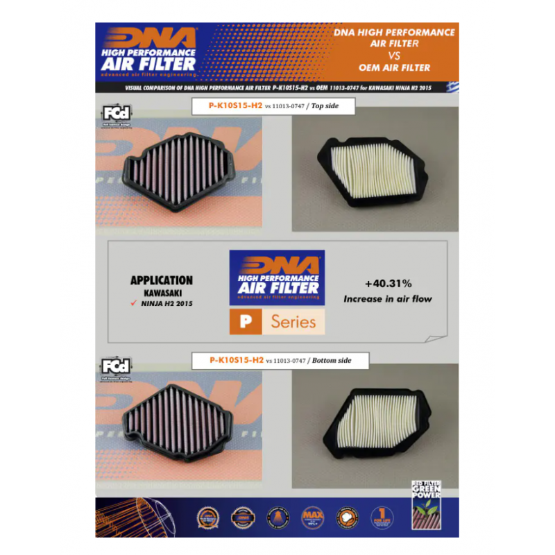 Filtru de aer sport DNA Kawasaki H2 1000 Ninja 15-22, H2 1000 SX/SE Ninja 18-23