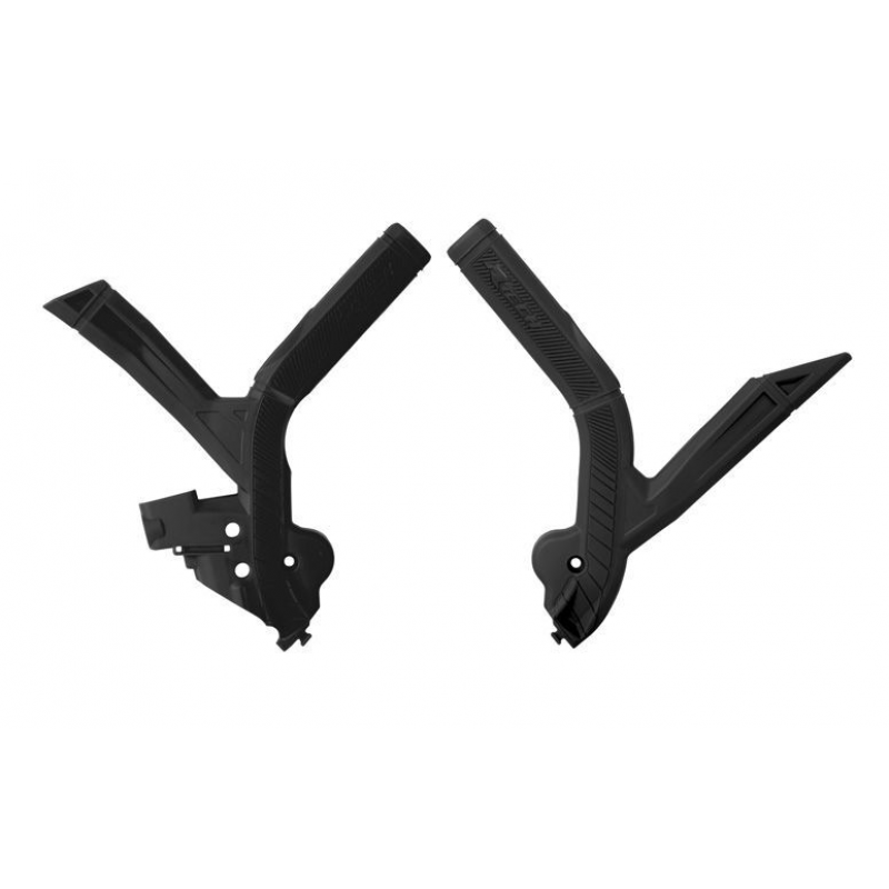 Protecțiile pentru cadru sunt concepute pentru a proteja lateralele cadrului motocicletei împotriva zgârieturilor, uzurii și loviturilor, cauzate de cizme, teren accidentat sau căderi. În plus, oferă aderență suplimentară pentru un control mai bun asupra motocicletei.