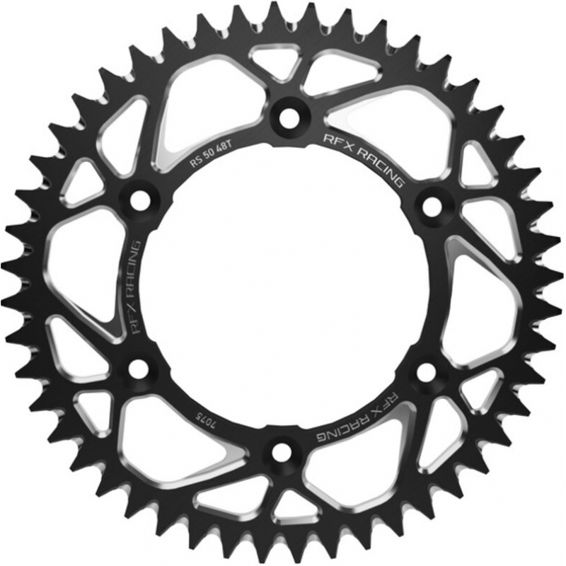 Pinioanele spate RFX Pro Series sunt prelucrate CNC din aluminiu aerospațial 7075 și dispun de caneluri de curățare a noroiului pentru o durată de viață mai lungă a lanțului și a pinionului.