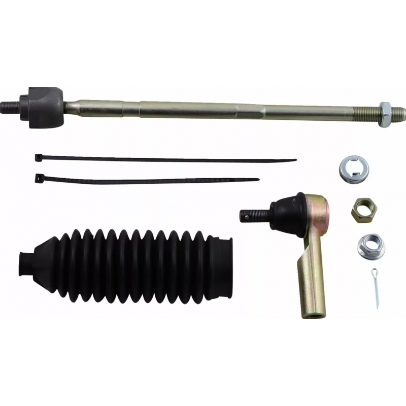 Set complet și rezistent pentru refacerea sistemului de direcție – include cap de bară interior și exterior, burduf de protecție, coliere și toată feroneria necesară. Axul interior are diametru mărit pentru o durabilitate superioară. Potrivit pentru partea stângă (șofer) sau dreaptă (pasager).