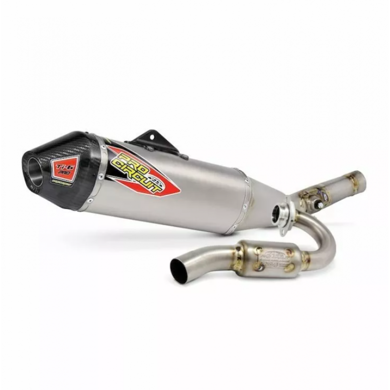 Sistemul de evacuare din titan Ti-6 este conceput pentru a îmbunătăți performanțele și puterea; construit din titan pe întreaga țeavă, țeavă mediană și cutie; acesta este sistemul de evacuare perfect pentru orice pilot de curse off-road sau de curse de interior care caută performanțe îmbunătățite, durabilitate și un aspect profesional; este prevăzut cu un amortizor de scântei detașabil care facilitează trecerea de la cursele off-road la cele de curse de interior